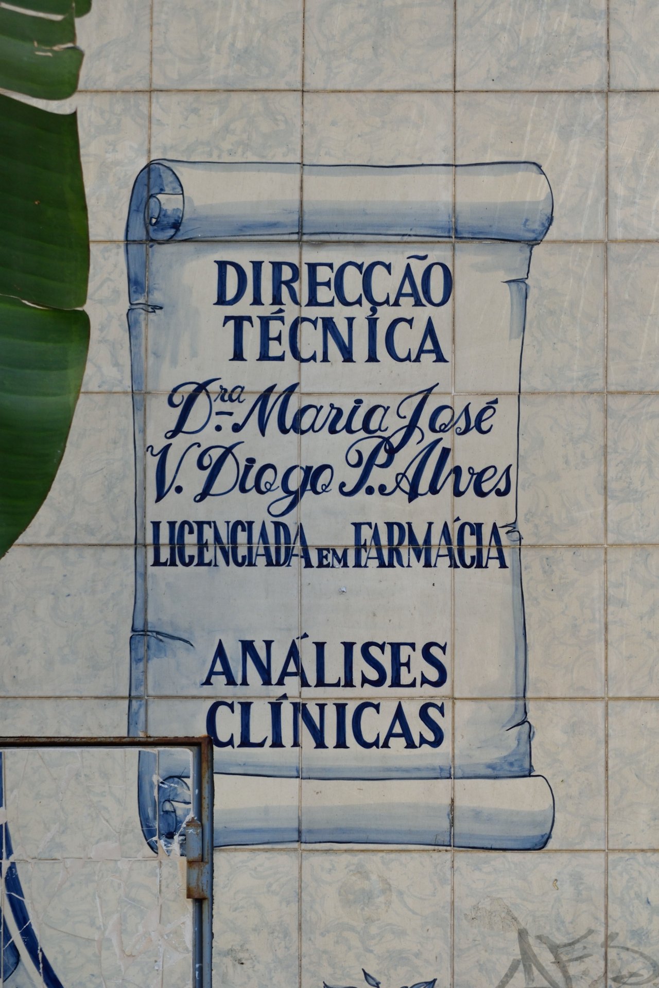 O estabelecimento encontrava-se devidamente anunciado por um inédito painel azulejar, cuidadosamente decorado com ilustrações de várias plantas medicinais e dos seus nomes científicos, destacando-se no centro da composição a representação de um anjo que segura um cálice com uma serpente, simbolizando a medicina. A especificação do nome da então responsável pela direção técnica reflete a exclusividade desta obra produzida na Fábrica de Cerâmica Constância em 1984 por Helder Silva e Mariete.