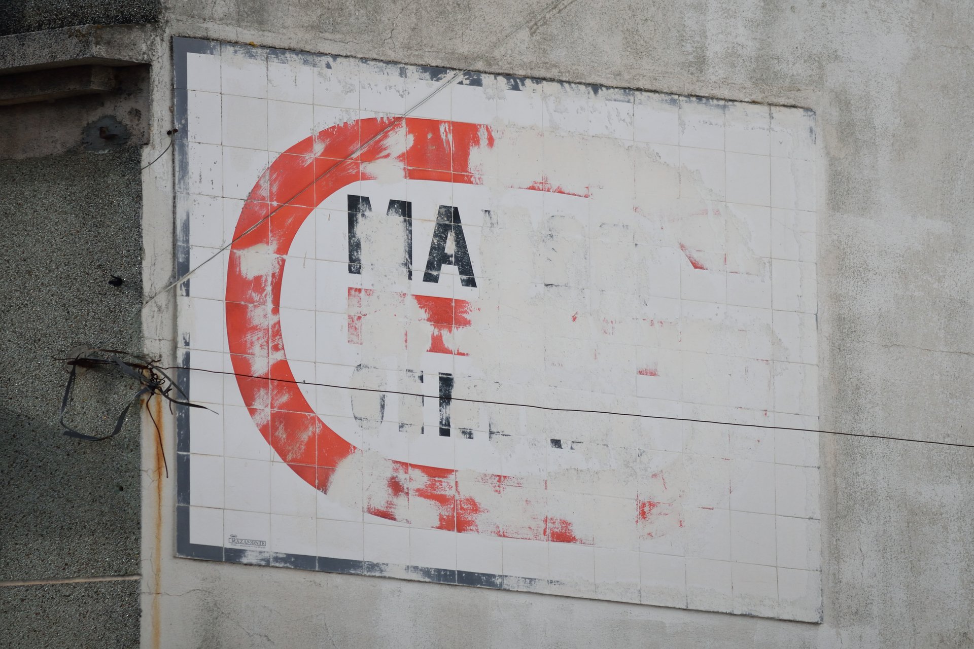 Vários dos painéis publicitários em azulejo da Mabor General foram produzidos pela Fábrica do Carvalhinho, de Gaia. No entanto, neste em Santiago do Cacém pode ver-se a assinatura do Atelier Razamonte, de Argoncilhe.