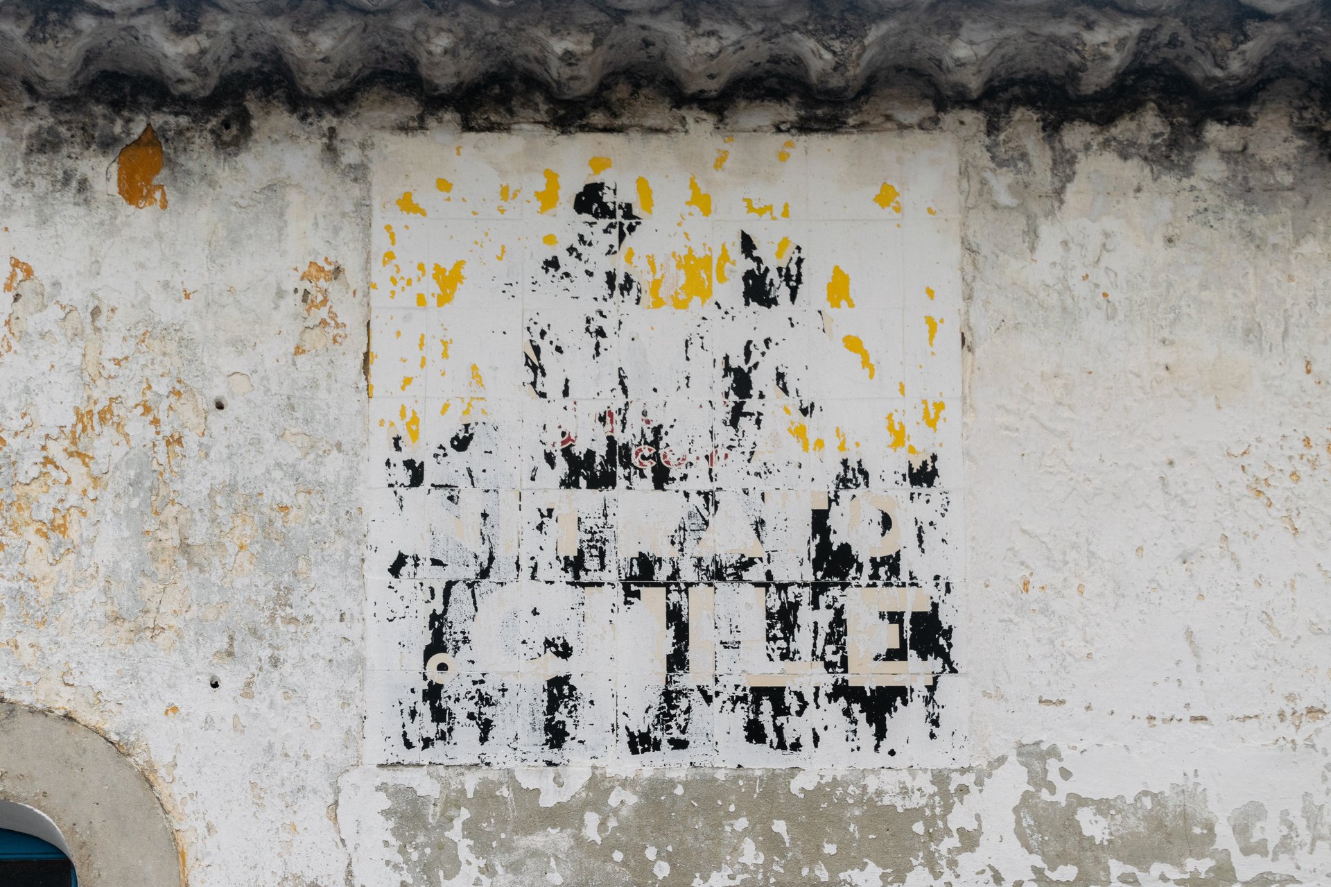 Apesar da aparência, este painel encontra-se em bom estado de conservação. Poderá ter sido pintado de branco de forma a evitar o pagamento da taxa de publicidade, após cessar o contrato entre o proprietário e a empresa distribuidora do produto, a Companhia União Fabril (CUF).