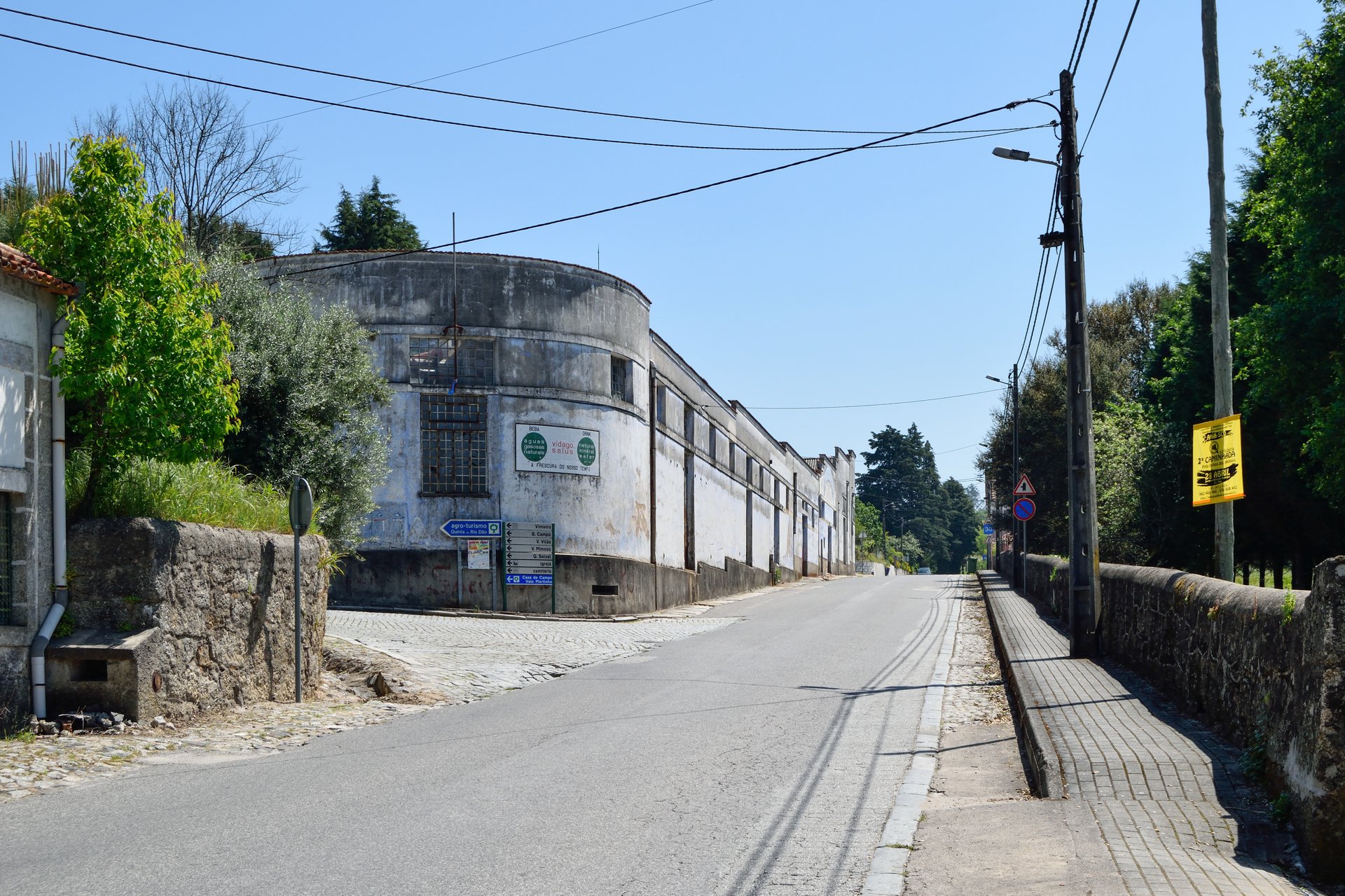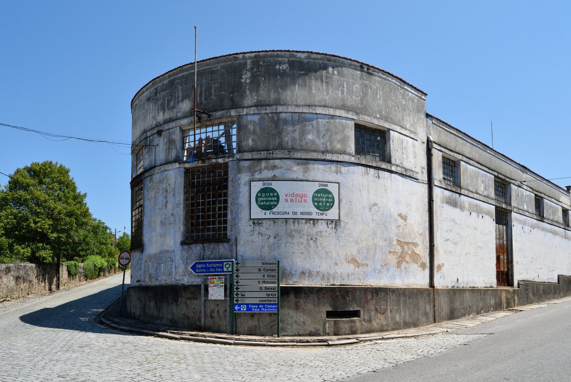 No Vimieiro, em Santa Comba Dão, é possível observar no gaveto de um edifício de armazéns atualmente devoluto, um painel em azulejo das Águas Vidago Salus, assinado pela Fábrica de Sacavém e moldado à superfície da parede, de planta circular. De proporção horizontal, o painel apresenta ao centro o nome da marca, por baixo o slogan “a frescura do nosso tempo”, e de ambos os lados dois círculos verdes representativos de uma estratégia de comunicação bilingue: o da esquerda conta no seu interior com a descrição “águas gasosas naturais” e é encimado pela palavra “beba”, o do lado direito expressa o mesmo mas em inglês, num convite declarado aos turistas estrangeiros.