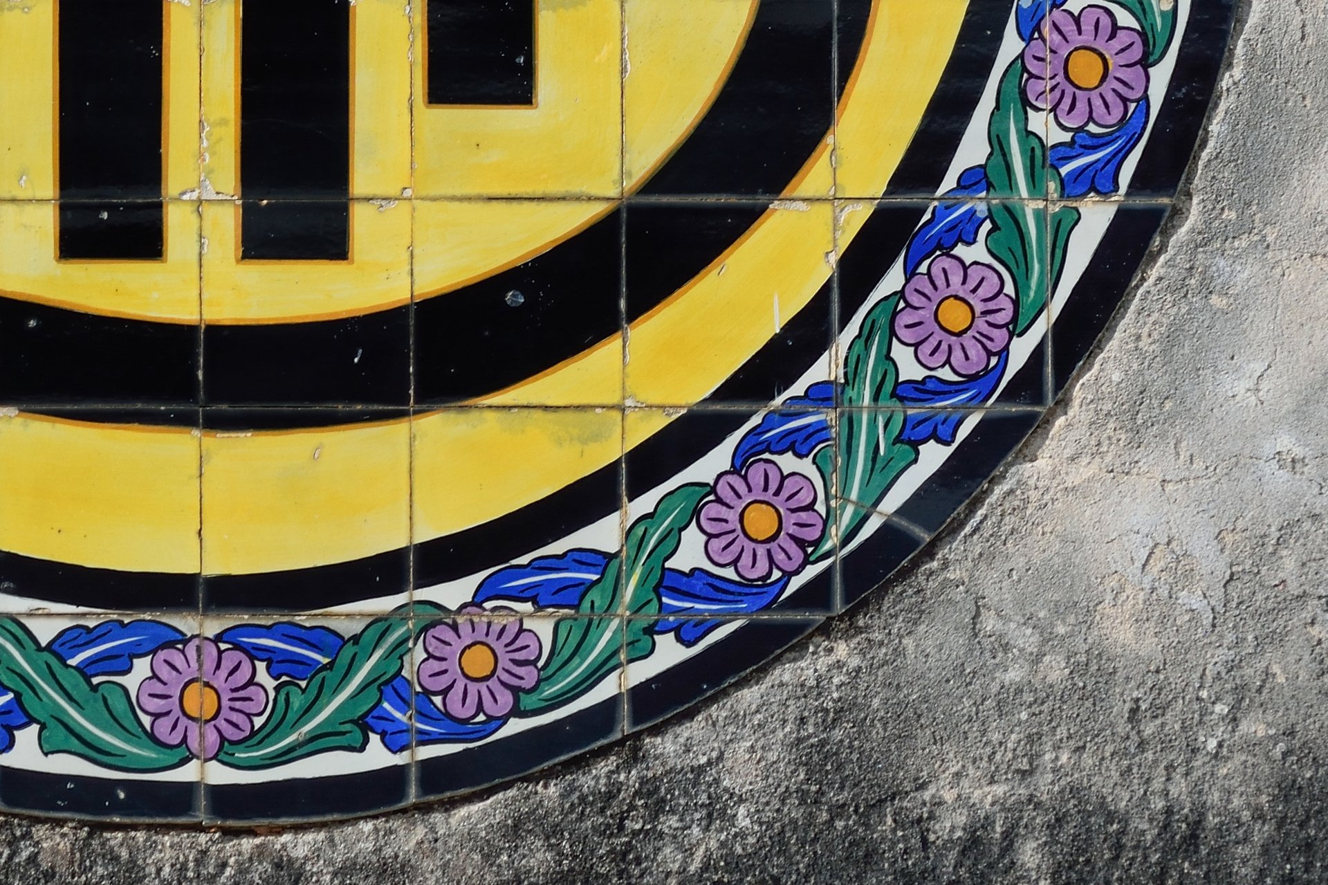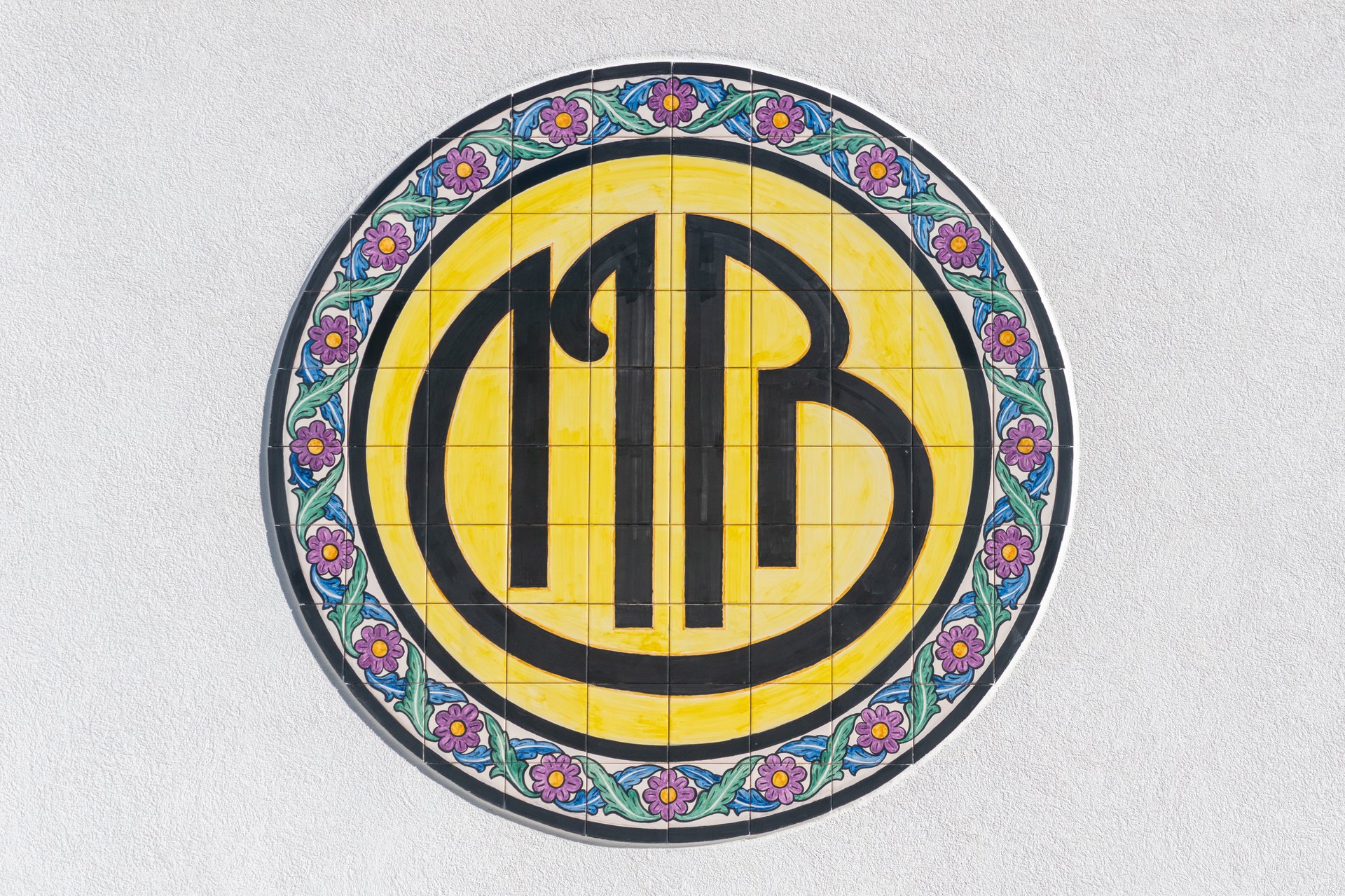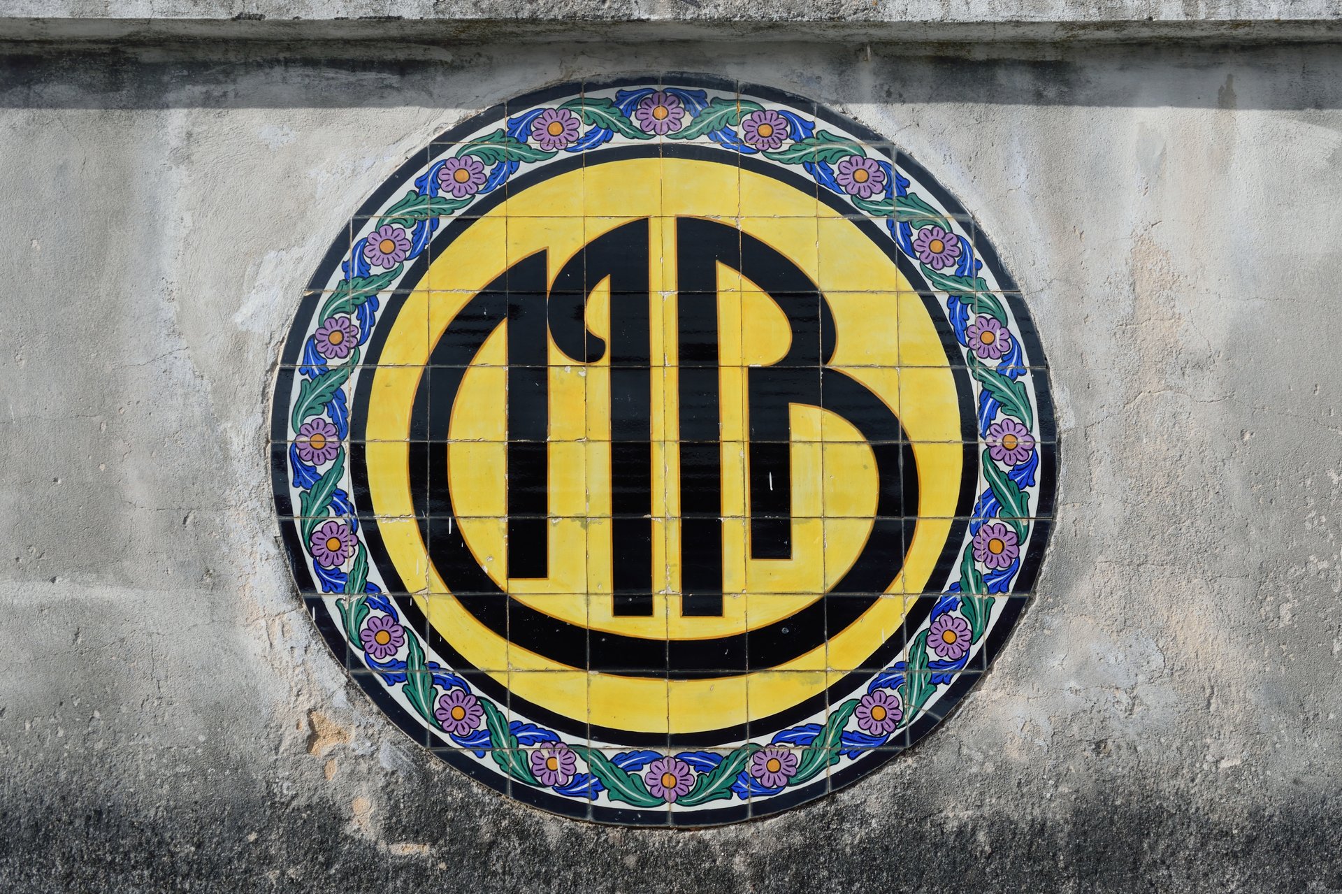 Na Mealhada, na fachada de um edifício devoluto, encontrava-se um interessante monograma. Pintado em letras pretas sobre fundo amarelo, num painel de azulejos de formato circular, a composição era rematada por uma moldura policromática de motivos florais.