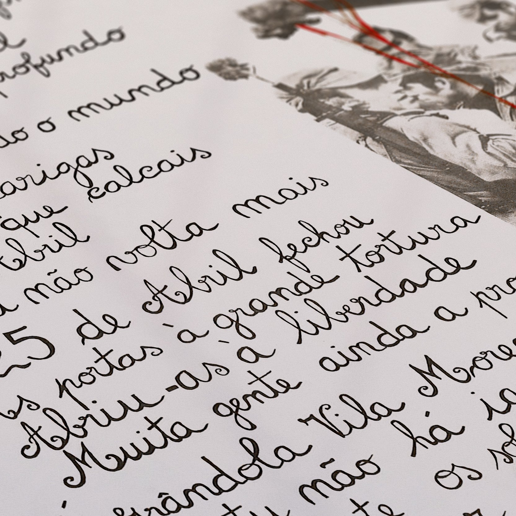 Baseado num cartaz concebido por trabalhadores alfabetizados pelo CEEC – Centro de Estudos Educação e Cultura. Tem como título “Viva o 25 de Abril!” e está escrito em quadras populares, acompanhadas da fotografia de um grupo de soldados com cravos nas espingardas, captada em Lisboa durante a revolução e de onde se destaca o Capitão Salgueiro Maia. Em 1970, 1 em cada 4 portugueses não sabia ler nem escrever.